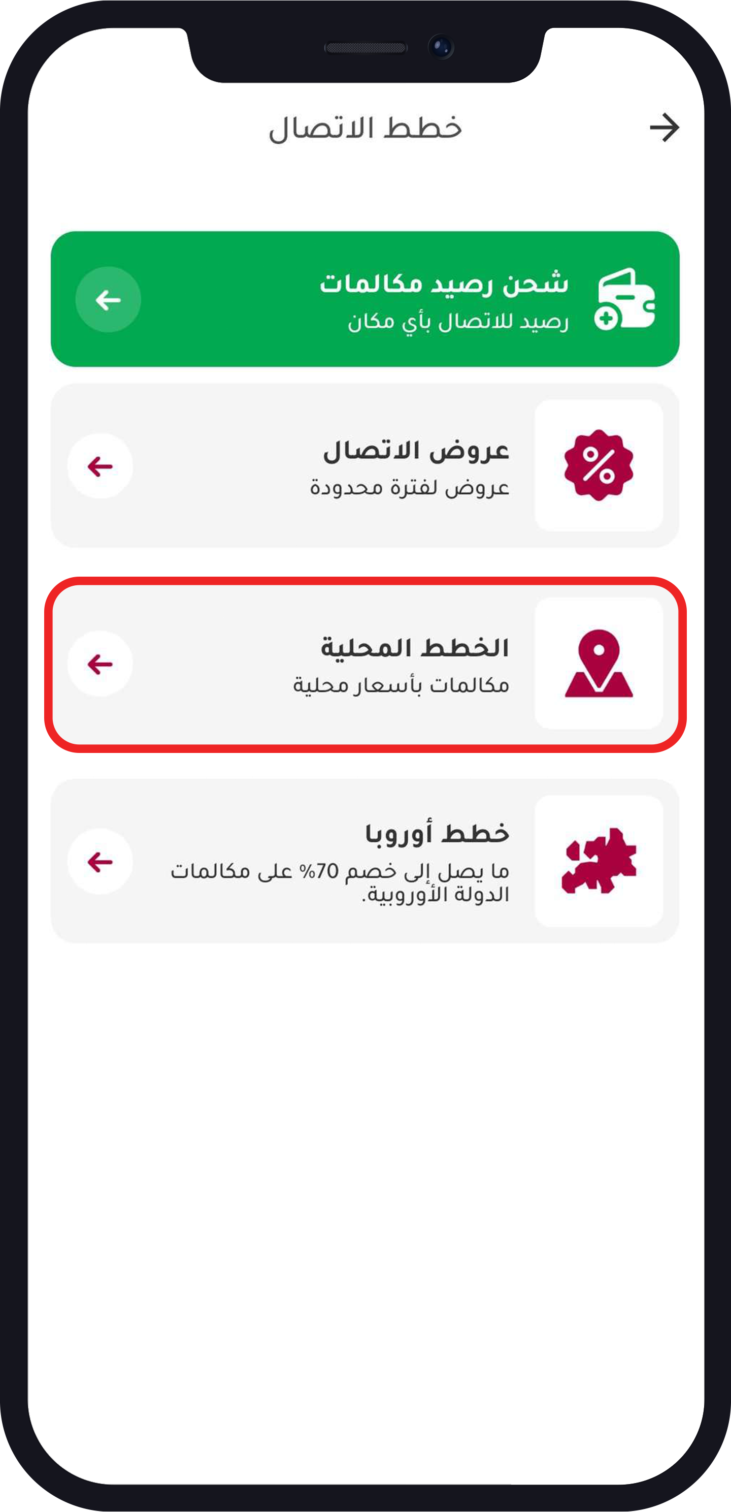 - شراء الرقم لوحده وشراء الرصيد بشكل منفصل من رصيد المكالمات> الخطط المحلية, اختيار الخطة واكمال الشراء