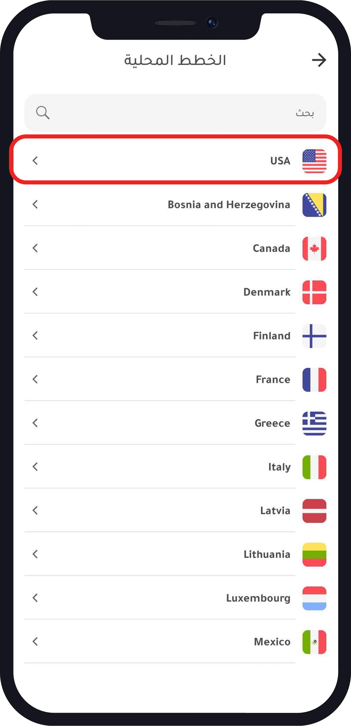 - اختر الدولة التي تريد شراء الباقة لها.