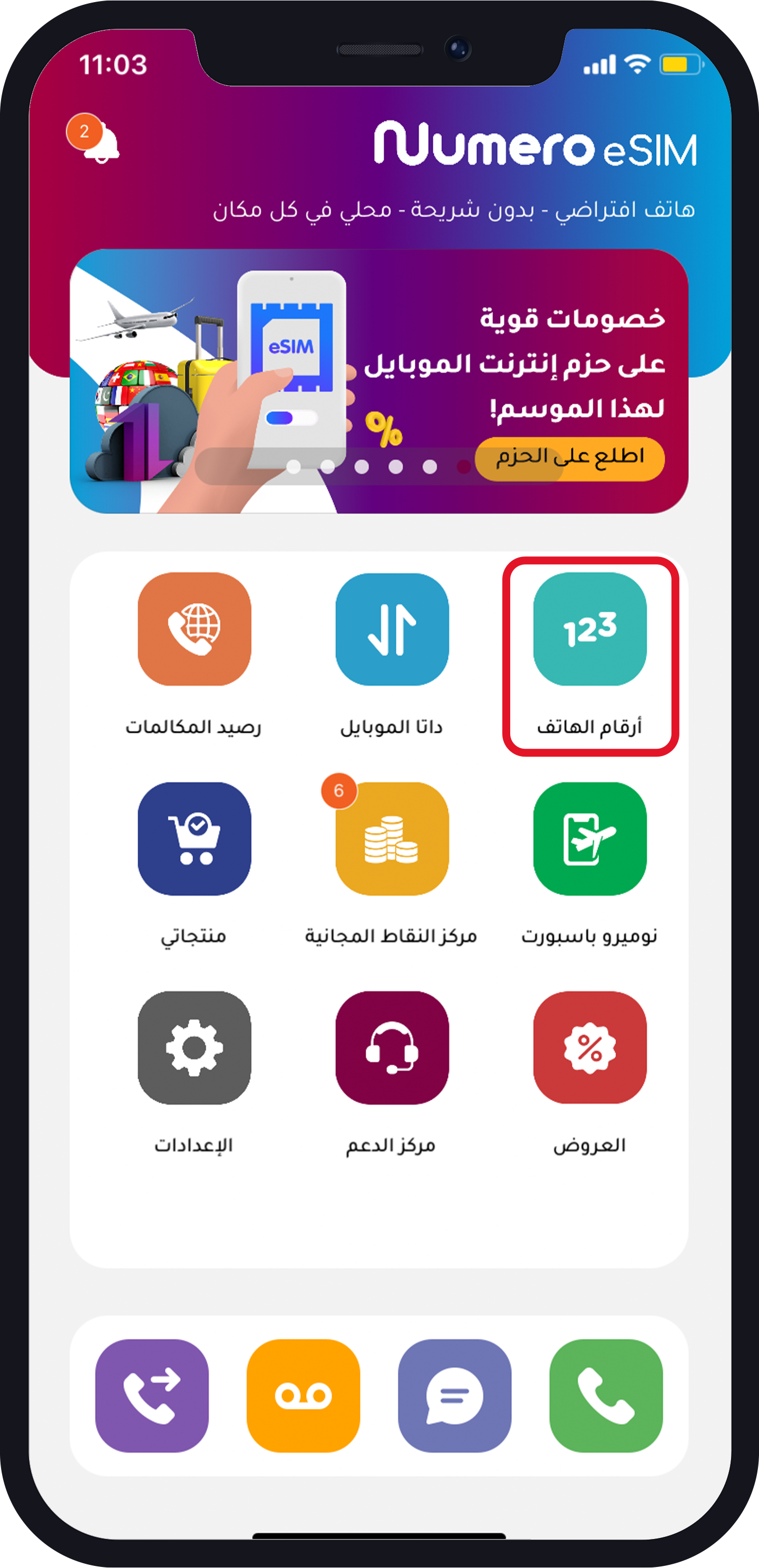 - من الصفحة الرئيسية اختر “أرقام الهاتف”