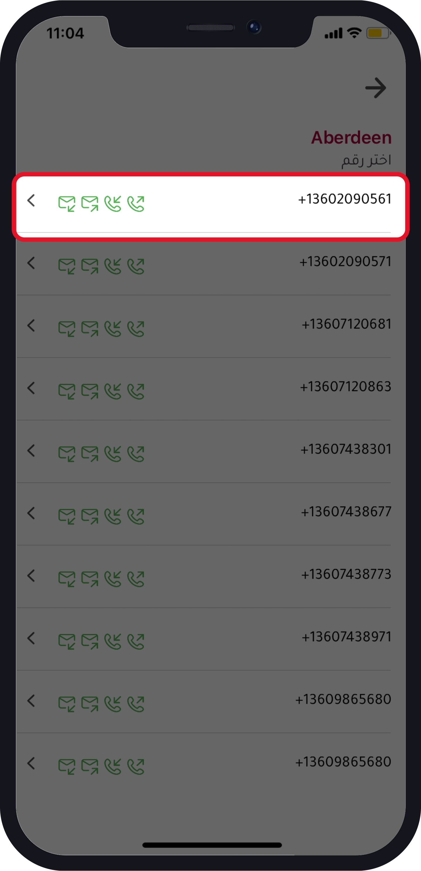 للتوضيح: هذا الشرح يصلح فقط لأرقام نوميرو الوهمية التي تم شراؤها للدول التي تدعم الاتصال المحلي والتي يمكن تمييزها داخل التطبيق من شكل الأيقونة المجاورة لها وكلمة “اتصال محلي” باللون الأخضر.