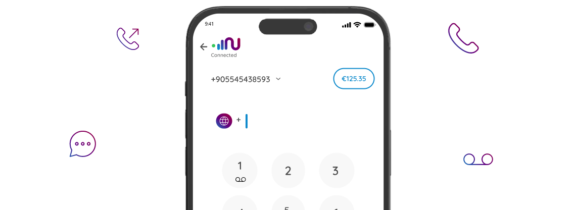 في شاشة لوحة الاتصال، اختر رقمك الافتراضي، أضف رقم المتلقي وتحقق من الأسعار.