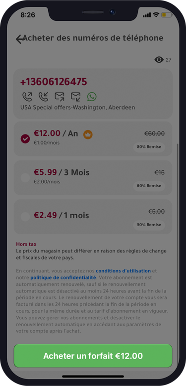 • Numéros mobiles américains : Disponibles avec des réductions allant jusqu’à 70 % pour un abonnement annuel, ces numéros peuvent être utilisés pour activer des comptes sur les réseaux sociaux et profiter d’offres spéciales.