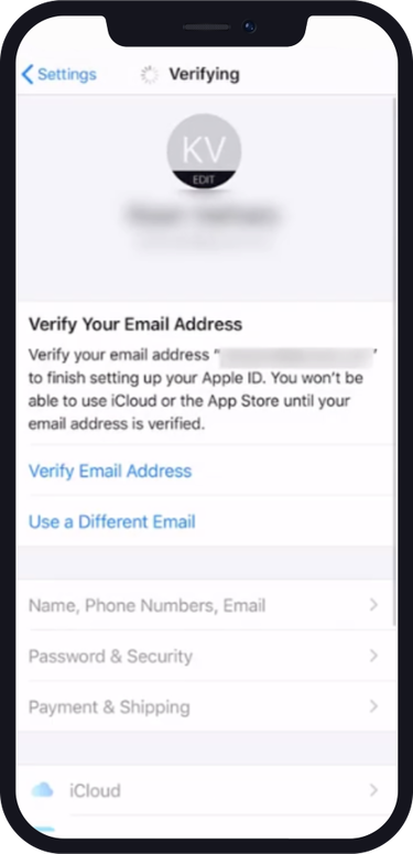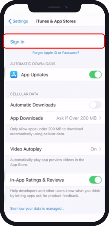 2. Now, back to “Settings”, and tap the top bar as illustrated in the image.Tap “Don’t have an Apple ID or forgot it”