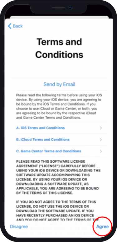 10. Tap “Agree” for the terms and conditions, and wait until the signing into iCloud finishes.