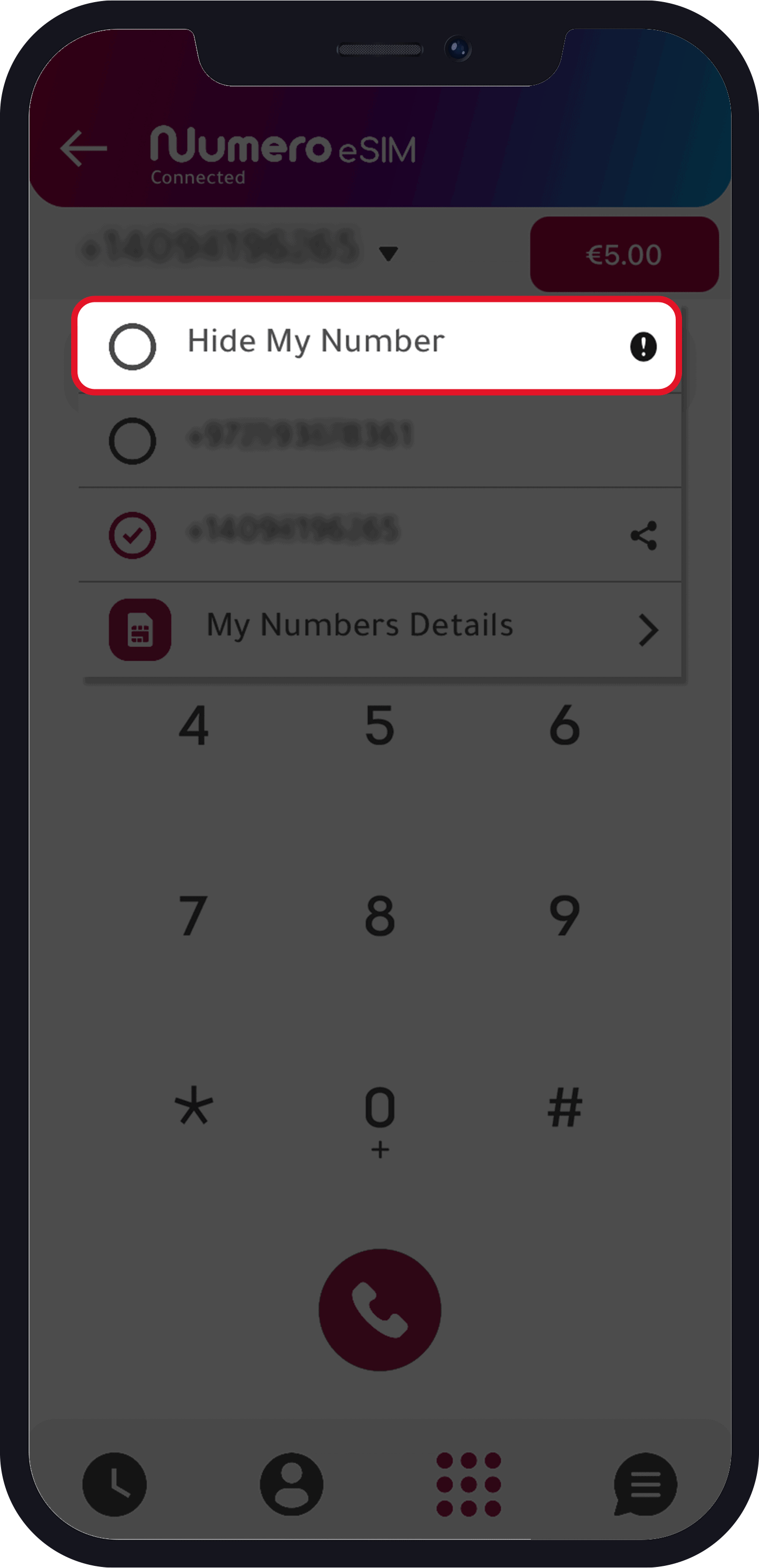 How to hide your phone number while calling using Numero eSIM App?
