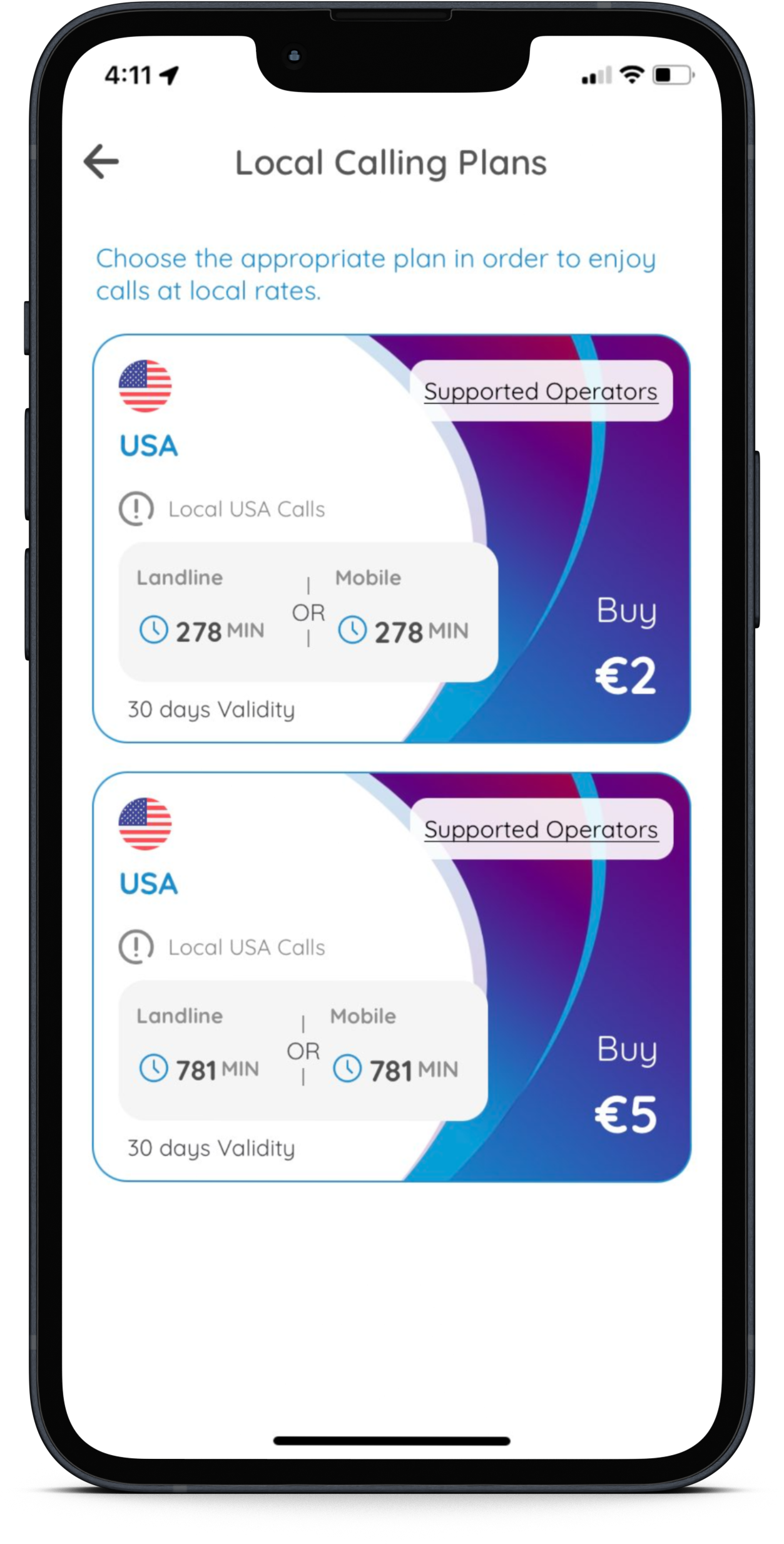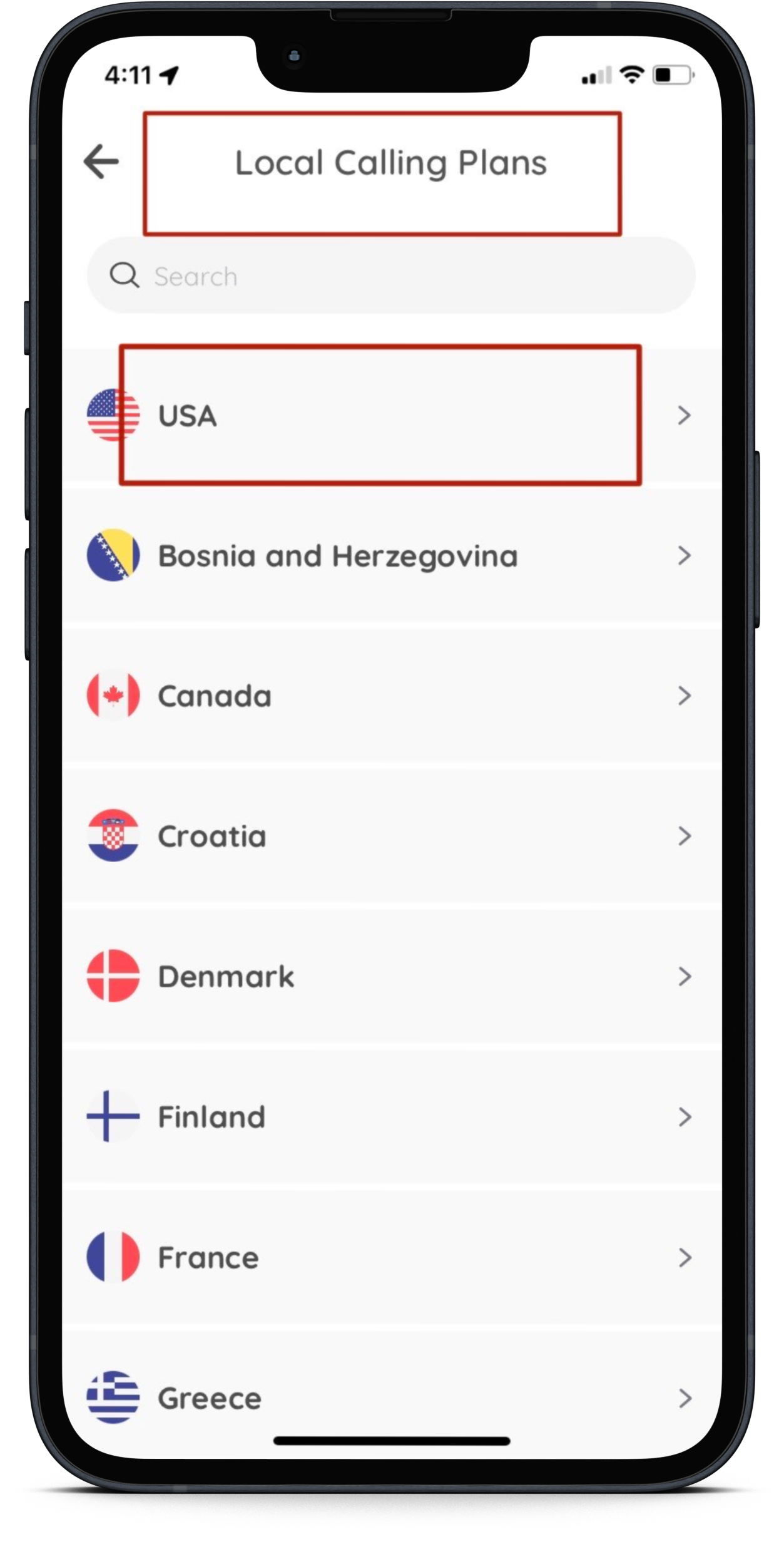 - Choose a country that supports local plans (has Local Calling written under the country’s name).