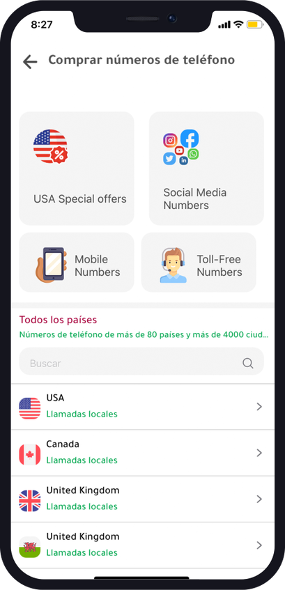 Puedes utilizar los números de teléfono virtuales de Numero de más de 80 países como segundos números privados para llamadas y SMS en caso de que no quieras revelar tu número principal en ciertas situaciones.